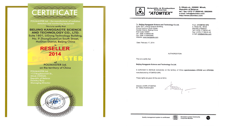 多年來,北京康高特科技有限公司通過與國外知名公司的合作,取得了*優(yōu)惠條件供應儀器設(shè)備的資格。其中,白俄羅斯Atomtex公司和Polimaster公司的多款儀器設(shè)備一路暢銷,獲得眾多好評。今年Atomtex公司和Polimaster公司按流程對我公司進行二次審核,根據(jù)我公司良好經(jīng)營狀況、規(guī)范經(jīng)營體系以及不斷發(fā)展壯大的規(guī)模,ATOMTEX公司和Polimaster公司延長我公司在華代理權(quán)時限。今后,北京康高特科技有限公司,將繼續(xù)為大家推出Atomtex公司和Polimaster公司高品質(zhì),低價格的先進儀器設(shè)備。